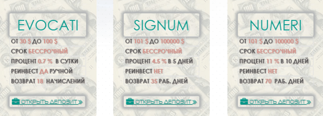 Начисление бонусов за указанные вклады производится в течение суток в виде депозита на выбранный инвестиционный план.