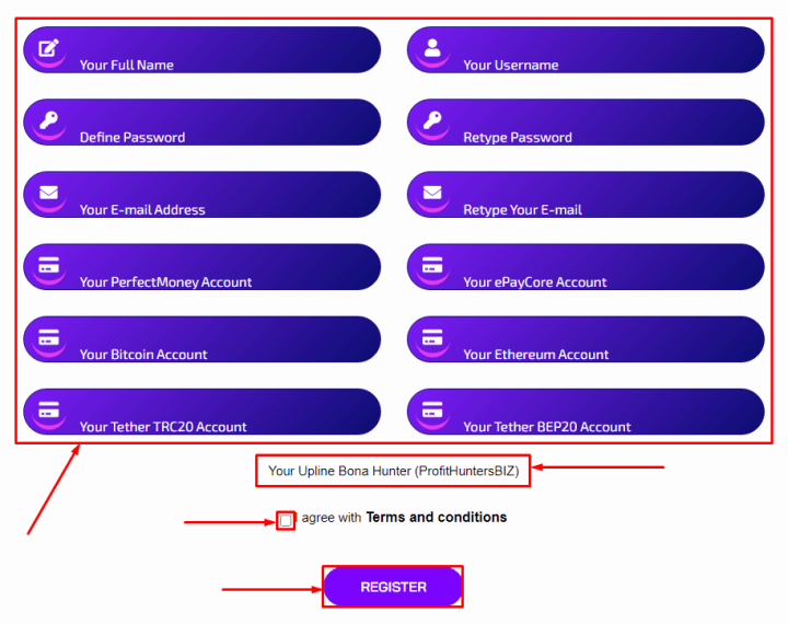 1. Для регистрации переходим по реферальной ссылке с блога на официальный сайт и нажимаем «Sign Up». Далее заполните регистрационную форму, проверьте аплайна (должен быть «ProfitHuntersBIZ»), согласитесь с правилами и нажмите кнопку «Register».