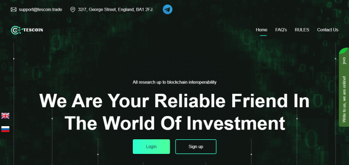Обзор и отзывы проекта Tescoin.trade. Новый среднесрочный проект с выгодным маркетингом от 3% до 5% в сутки.