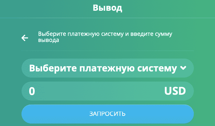 4. Как только на балансе будет сумма, доступная к выводу, вы можете оформить заявку и запросить перевод денег на ваш кошелек. Для этого в верхнем меню личного кабинета воспользуйтесь разделом «Вывод», затем укажите в заявке платежку, сумму и нажмите кнопку «Запросить».
