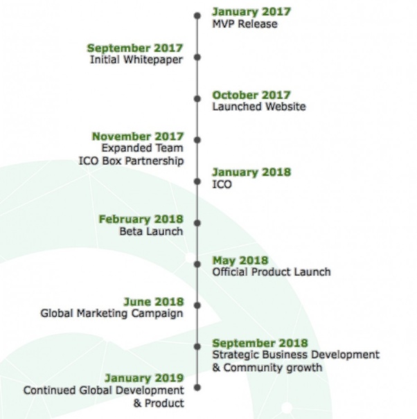 В ноябре 2017 года началось расширенное сотрудничество с партнерами. В январе 2018 года была проведена основная продажа токенов. В феврале 2018 года был осуществлен бета-запуск ресурса. На март 2018 года запланирован официальный выпуск продукта, его представление на рынке.